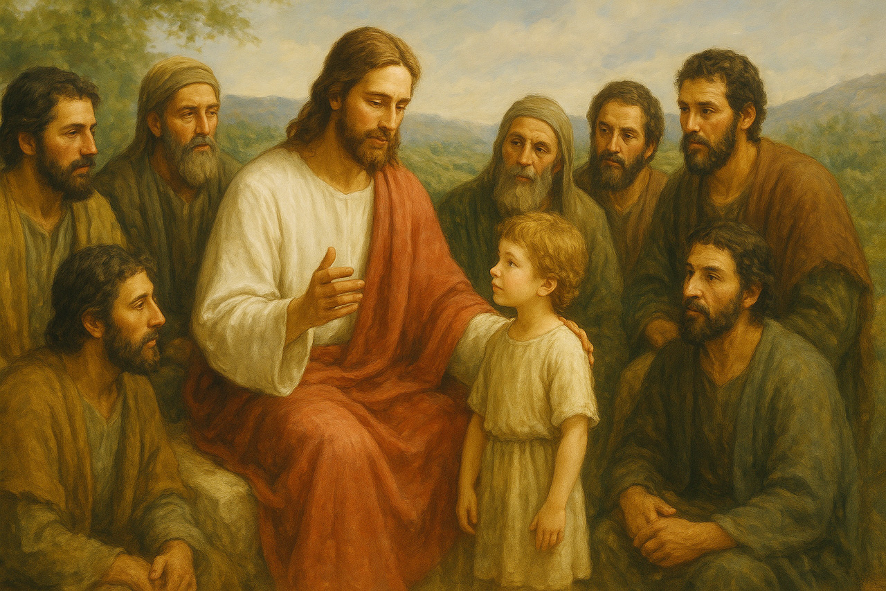 1 Khi ấy, các môn đệ lại gần hỏi Đức Giê-su rằng : “Thưa Thầy, ai là người lớn nhất trong Nước Trời ?” 2 Đức Giê-su liền gọi một em nhỏ đến, đặt vào giữa các ông 3 và nói : “Thầy bảo thật anh em : nếu anh em không trở lại mà nên như trẻ nhỏ, thì sẽ chẳng được vào Nước Trời.